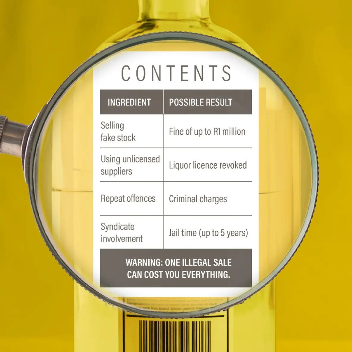 Selling illicit alcohol is illegal and comes with severe consequences. It doesn’t just put your customers in danger. It puts your reputation and your livelihood at risk. Illicit alcohol can end your business.